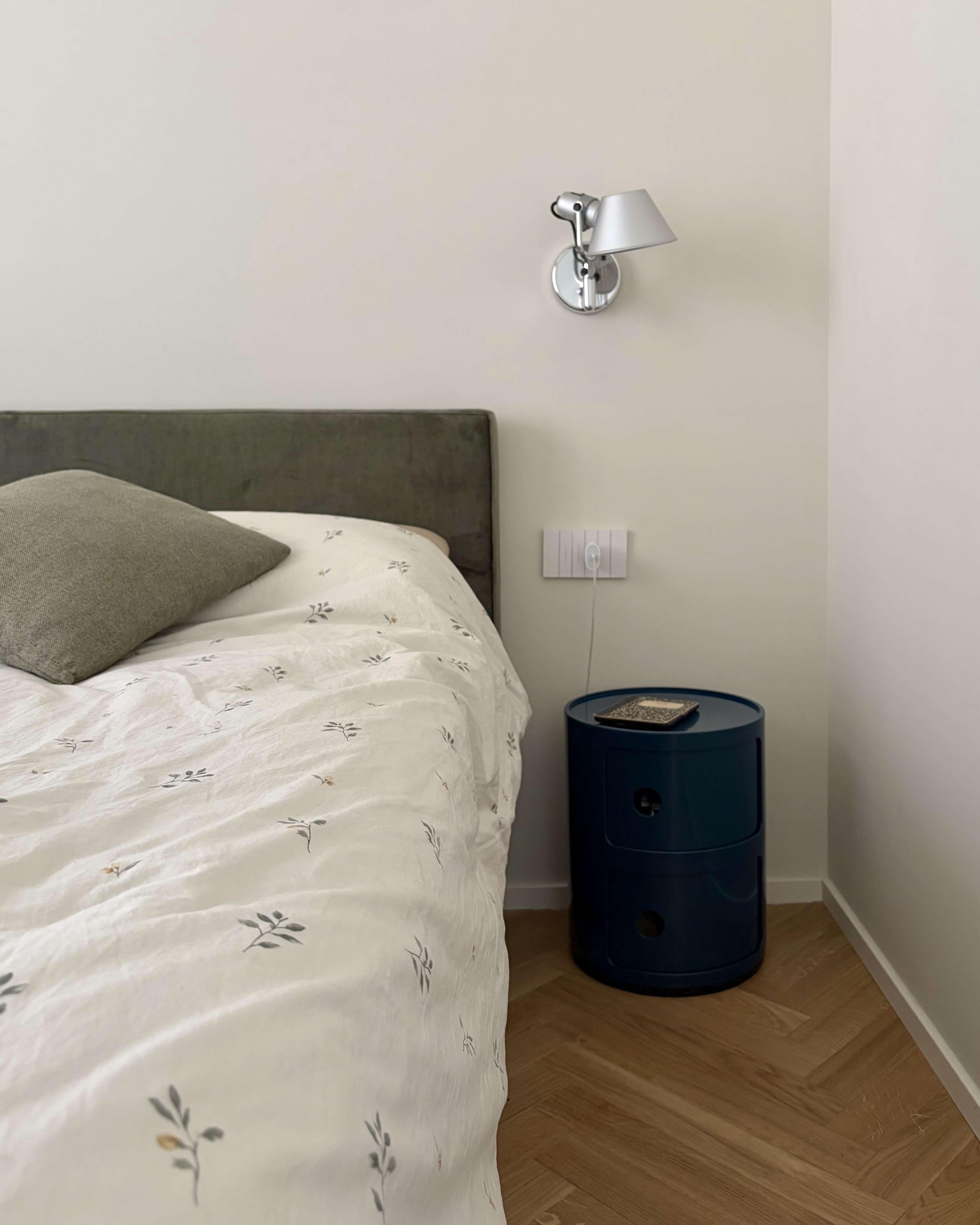 Una ristrutturazione completa in zona De Angeli, dove la zona giorno è stata ripensata come un unico ambiente fluido e luminoso. La nuova distribuzione ha permesso di ricavare tre camere da letto, tra cui una suite matrimoniale con cabina armadio pass-through e bagno privato: uno spazio intimo e rilassante, pensato come piccolo rifugio all’interno della casa.