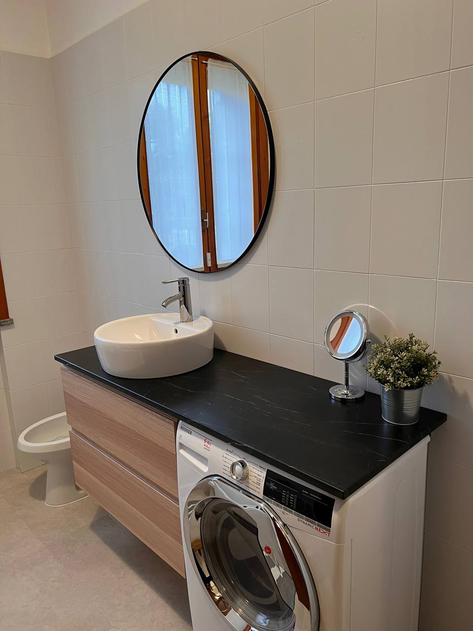 Tutte le lavorazioni realizzate non hanno necessitato di opere murarie né della manodopera da parte di professionisti specializzati. Abbiamo scelto un nuovo pavimento per tutta la casa in listelli di psc a incastro, posati sulle piastrelle esistenti, tranne in bagno dove è stata applicata una pavimentazione adesiva in pvc, anche questa applicata sulle vecchie piastrelle.