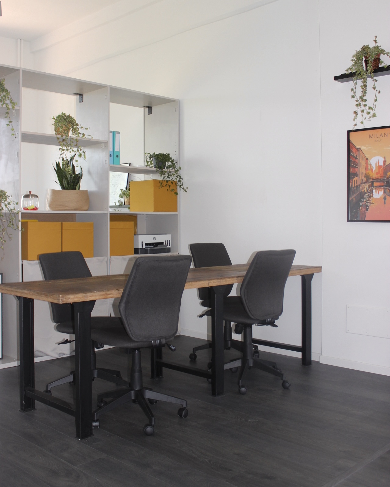 All'interno di un ex mulino del 1930 abbiamo progettato uno spazio multifunzionale pensato per soddisfare tutte le richieste e i bisogni delle diverse realtà di cui questo ufficio sarà a disposizione. Il palazzo negli anni ha mantenuto le sue particolarità che lo rendono così unico e bello, per cui il concetto del nostro progetto era lo stesso: rinnovare dando una nuova vita mettendo in risalto le sue originalità; il risultato è un ambiente dal carattere industriale e moderno, luminosissimo con le sue grandi finestre originali, soffitti alti, spazi aperti e ampi, dettagli neri in contrasto con il legno chiaro ed elementi in materiali naturali come paglia, tessuti, rattan ecc, che riscaldano l'ambiente industriale e lo rendono più accogliente. Lo spazio è suddiviso in diverse zone che principalmente sono create con i mobili dando la possibilità di trasformazione quando e come necessario.