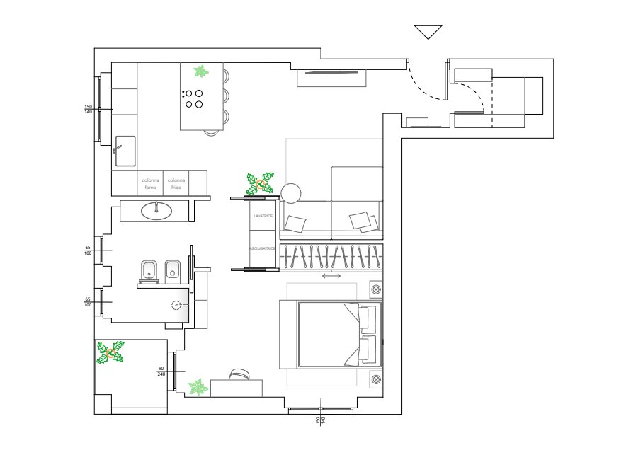 Una ristrutturazione completa di un bilocale a Milano, pensata per una giovane coppia alla sua prima convivenza. Il progetto nasce dall’esigenza di trasformare la zona giorno in uno spazio aperto, favorendo la continuità tra living e cucina e creando un ambiente luminoso e accogliente.